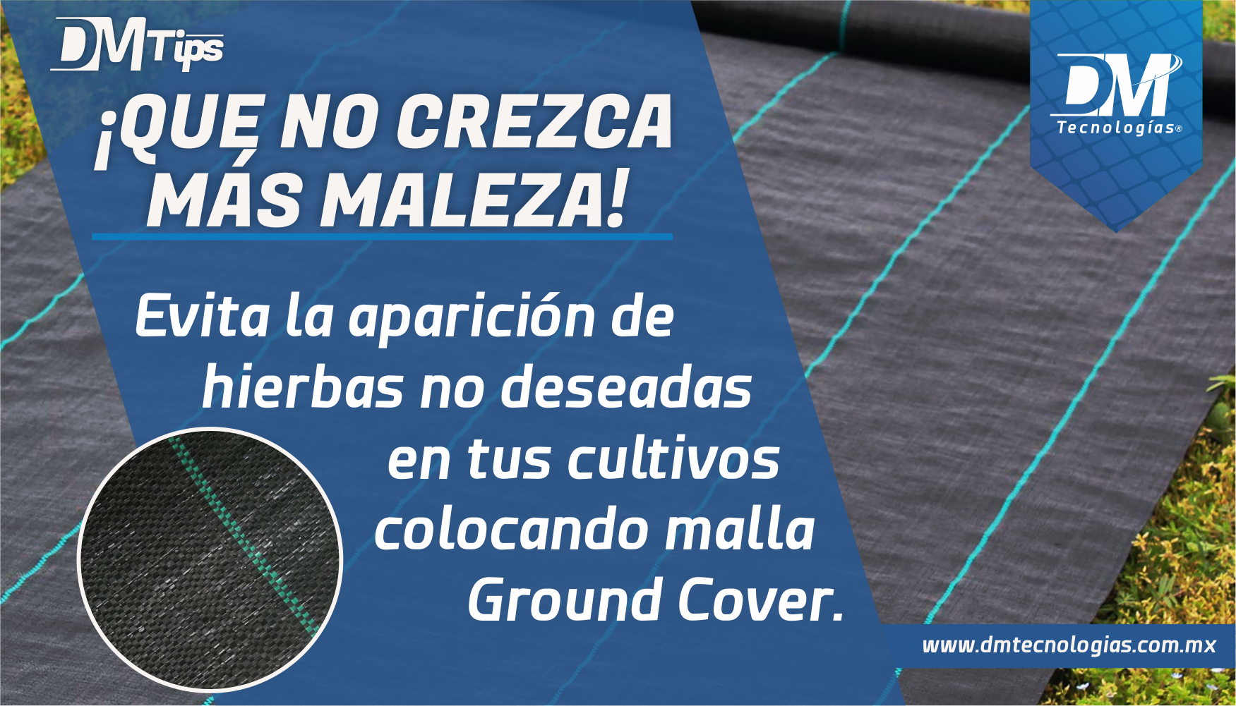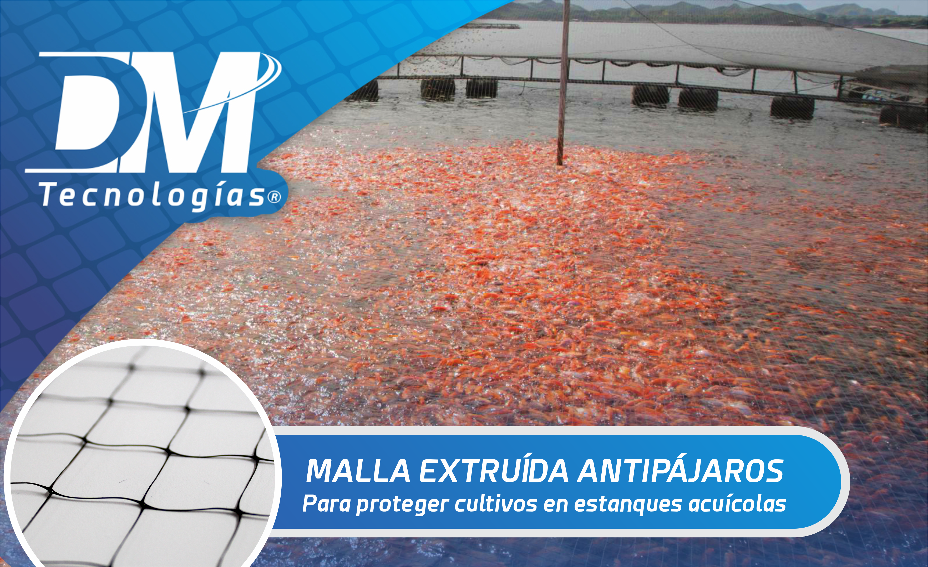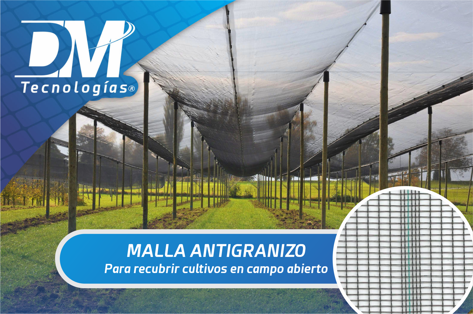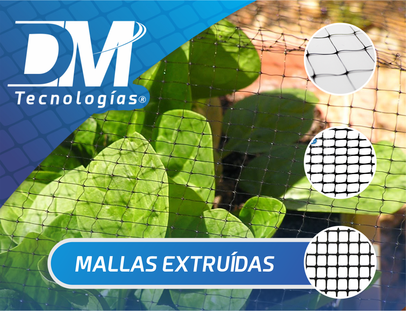 En DM TecnologÃas encontrarás Mallas AgrÃcolas, Mallas acuÃcolas y materiales Geosintéticos como: Geomembrana, Geotextil, Geomallas, Plástico para invernadero, Malla antipájaros, Malla Antiáfidos, Malla Tutora, Malla sombra agrÃcola, Mallasombra arquitectónica, Malla ostionera, Malla camaronera y muchos más.